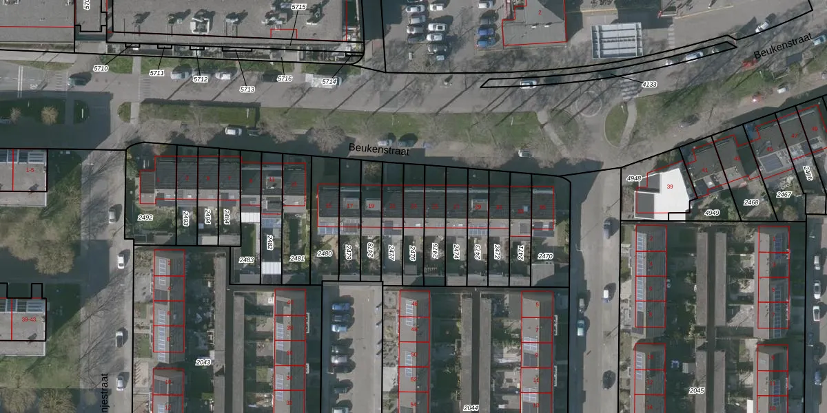 Gebruik de zoekbalk of klik op een perceel voor informatie over de adressen binnen dit perceel.