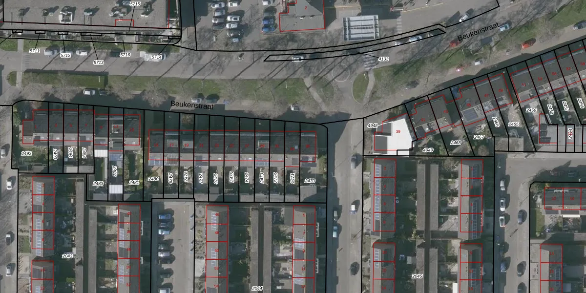 Beukenstraat 33 is gelegen op kadastraal perceel GOE00E2471. Deze kadastrale aanduiding is uniek en wordt gebruikt door het Kadaster om eigendomsrechten en andere zakelijke rechten vast te leggen. Het perceel maakt onderdeel uit van de kadastrale gemeente Goes.