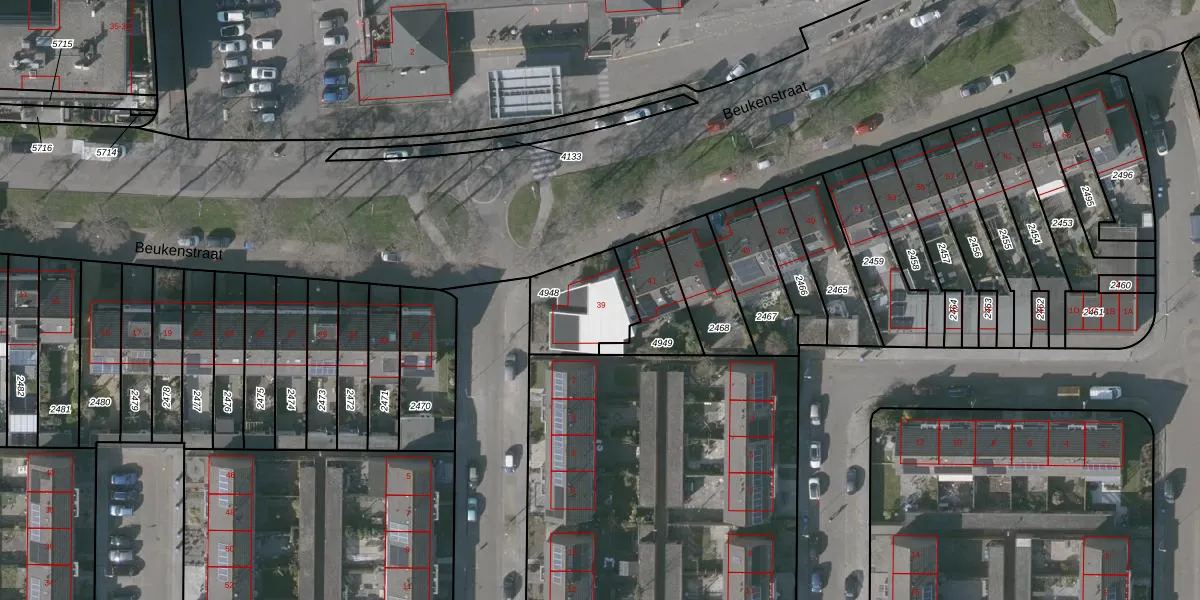 Beukenstraat 39 is gelegen op kadastraal perceel GOE00E4948. Deze kadastrale aanduiding is uniek en wordt gebruikt door het Kadaster om eigendomsrechten en andere zakelijke rechten vast te leggen. Het perceel maakt onderdeel uit van de kadastrale gemeente Goes.
