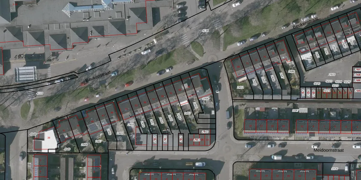 Beukenstraat 63 is gelegen op kadastraal perceel GOE00E2453. Deze kadastrale aanduiding is uniek en wordt gebruikt door het Kadaster om eigendomsrechten en andere zakelijke rechten vast te leggen. Het perceel maakt onderdeel uit van de kadastrale gemeente Goes.