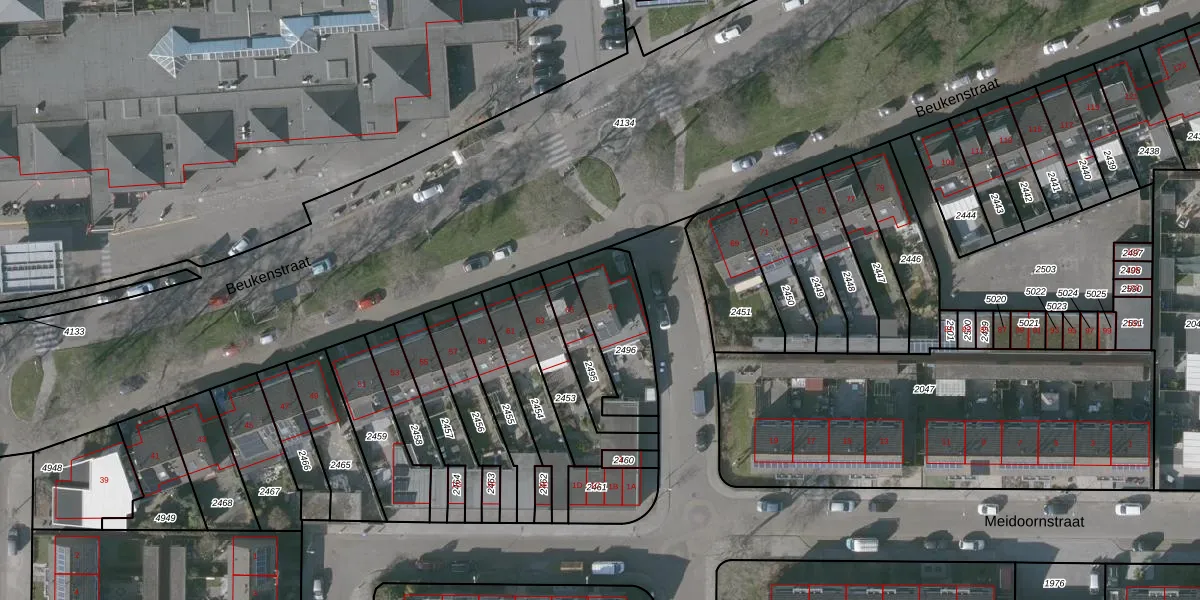 Gebruik de zoekbalk of klik op een perceel voor informatie over de adressen binnen dit perceel.