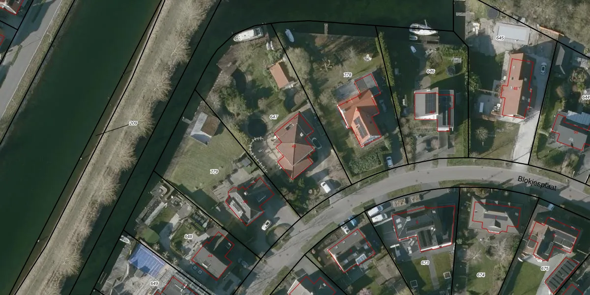 Het perceel waarop Blokjesplaat 46 staat heeft een oppervlakte van 1698 m². Dit is een zeer groot perceel. De perceeloppervlakte wordt geregistreerd door het Kadaster. Gedetailleerde informatie over de maten van dit perceel kunt u vinden in het rapport Kadastrale kaart met maatvoering van Blokjesplaat 46.