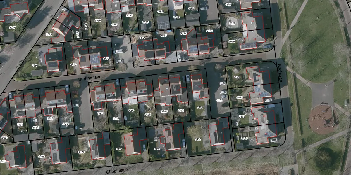 Brahmslaan 21 is gelegen op kadastraal perceel GOE00E3484. Deze kadastrale aanduiding is uniek en wordt gebruikt door het Kadaster om eigendomsrechten en andere zakelijke rechten vast te leggen. Het perceel maakt onderdeel uit van de kadastrale gemeente Goes.
