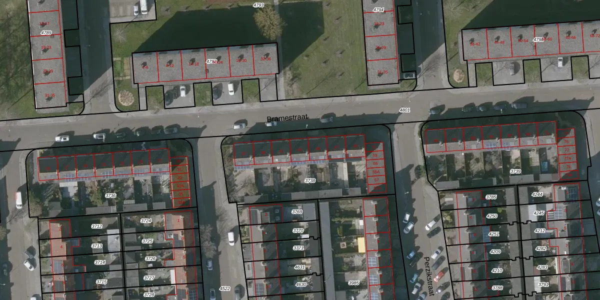 Bramestraat 43 is gelegen op kadastraal perceel GOE00C3738. Deze kadastrale aanduiding is uniek en wordt gebruikt door het Kadaster om eigendomsrechten en andere zakelijke rechten vast te leggen. Het perceel maakt onderdeel uit van de kadastrale gemeente Goes.