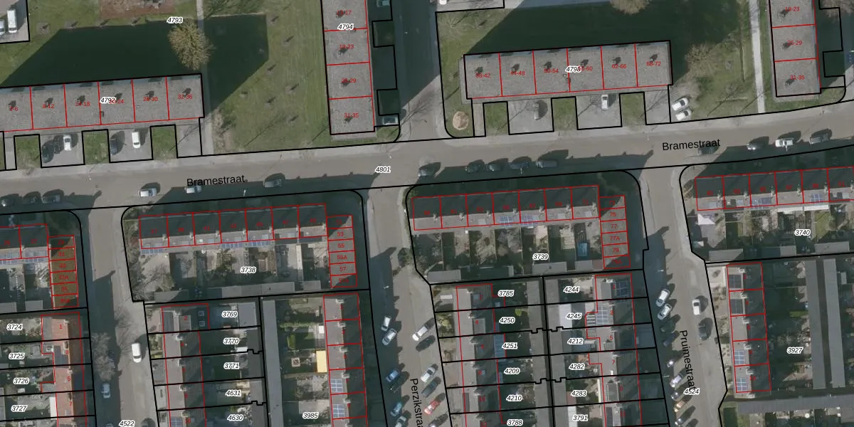 Bramestraat 59 is gelegen op kadastraal perceel GOE00C3739. Deze kadastrale aanduiding is uniek en wordt gebruikt door het Kadaster om eigendomsrechten en andere zakelijke rechten vast te leggen. Het perceel maakt onderdeel uit van de kadastrale gemeente Goes.