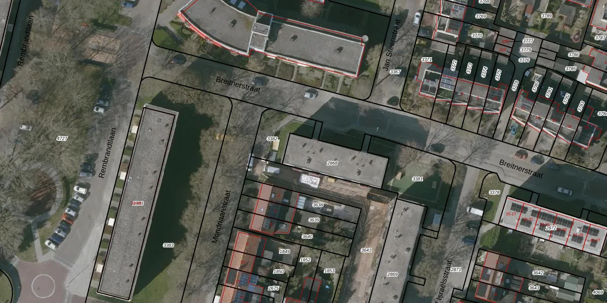 Het perceel waarop Breitnerstraat 3 staat heeft een oppervlakte van 394 m². Dit is een groot perceel. De perceeloppervlakte wordt geregistreerd door het Kadaster. Gedetailleerde informatie over de maten van dit perceel kunt u vinden in het rapport Kadastrale kaart met maatvoering van Breitnerstraat 3.