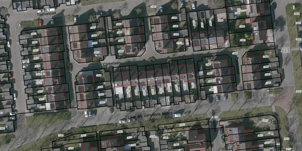 Gebruik de zoekbalk of klik op een perceel voor informatie over de adressen binnen dit perceel.