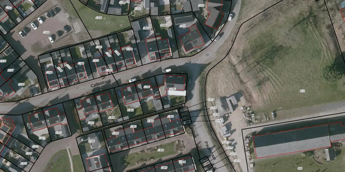 Cellostraat 16 is gelegen op kadastraal perceel GOE00V1295. Deze kadastrale aanduiding is uniek en wordt gebruikt door het Kadaster om eigendomsrechten en andere zakelijke rechten vast te leggen. Het perceel maakt onderdeel uit van de kadastrale gemeente Goes.
