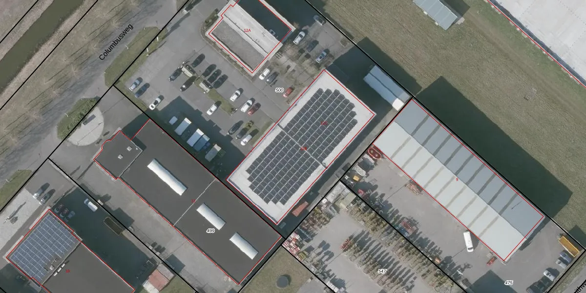 Het perceel waarop Columbusweg 12-B staat heeft een oppervlakte van 5155 m². Dit is een zeer groot perceel. De perceeloppervlakte wordt geregistreerd door het Kadaster. Gedetailleerde informatie over de maten van dit perceel kunt u vinden in het rapport Kadastrale kaart met maatvoering van Columbusweg 12-B.