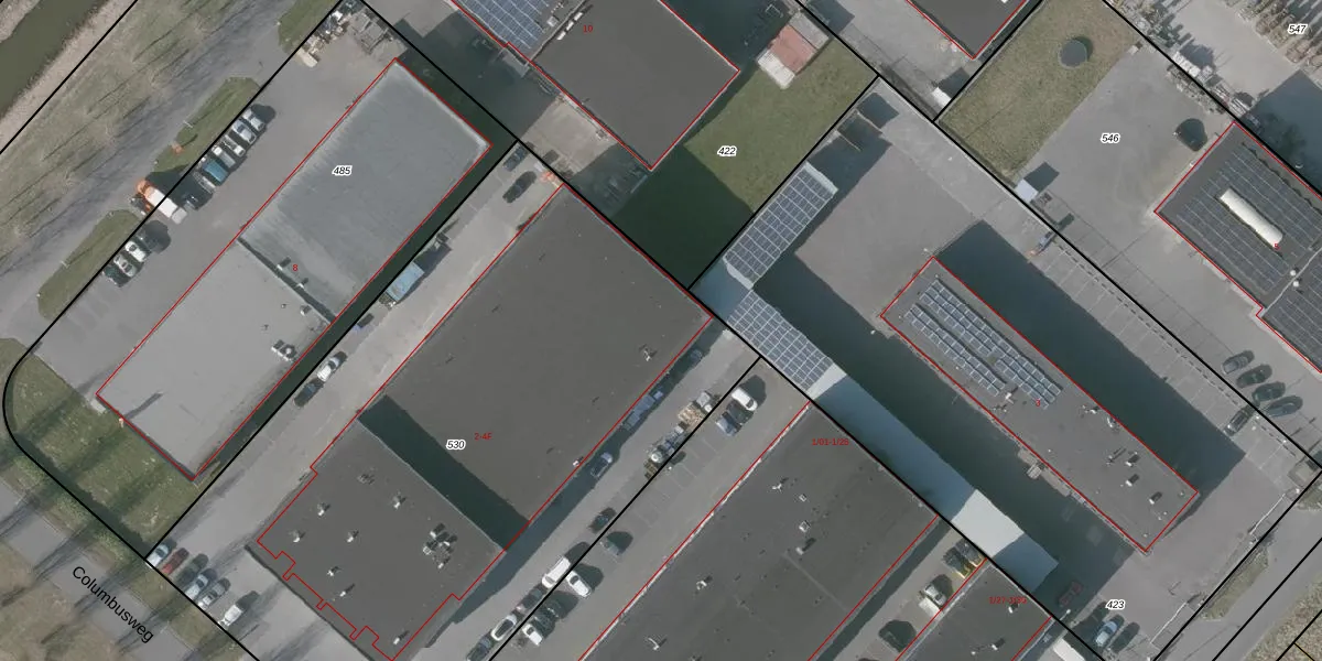 Het perceel waarop Columbusweg 2-F staat heeft een oppervlakte van 4180 m². Dit is een zeer groot perceel. De perceeloppervlakte wordt geregistreerd door het Kadaster. Gedetailleerde informatie over de maten van dit perceel kunt u vinden in het rapport Kadastrale kaart met maatvoering van Columbusweg 2-F.