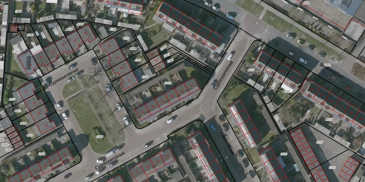 Het perceel waarop Cypressenstraat 52 staat heeft een oppervlakte van 1012 m². Dit is een zeer groot perceel. De perceeloppervlakte wordt geregistreerd door het Kadaster. Gedetailleerde informatie over de maten van dit perceel kunt u vinden in het rapport Kadastrale kaart met maatvoering van Cypressenstraat 52.