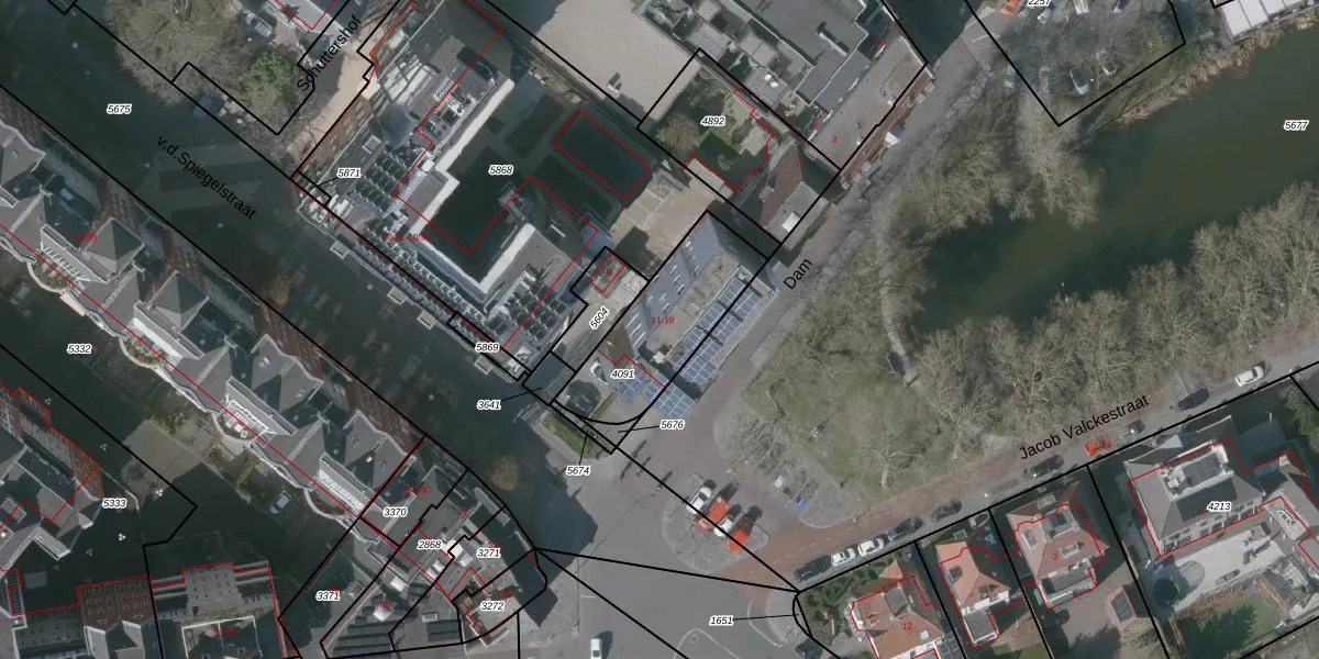 Het perceel waarop Dam 15 staat heeft een oppervlakte van 422 m². Dit is een groot perceel. De perceeloppervlakte wordt geregistreerd door het Kadaster. Gedetailleerde informatie over de maten van dit perceel kunt u vinden in het rapport Kadastrale kaart met maatvoering van Dam 15.