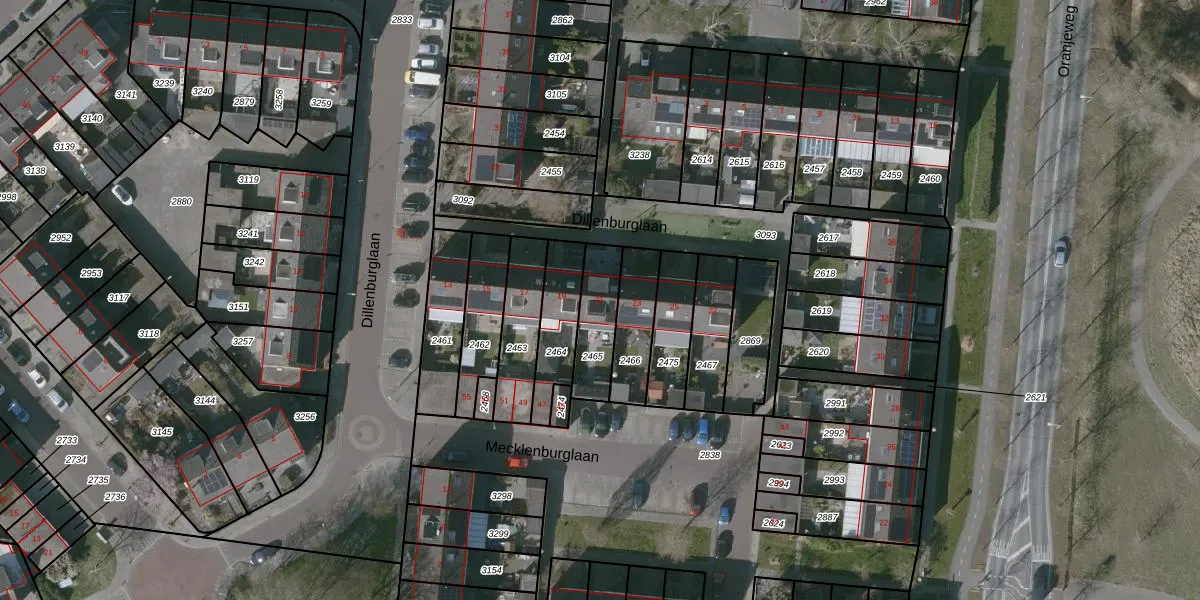 Gebruik de zoekbalk of klik op een perceel voor informatie over de adressen binnen dit perceel.
