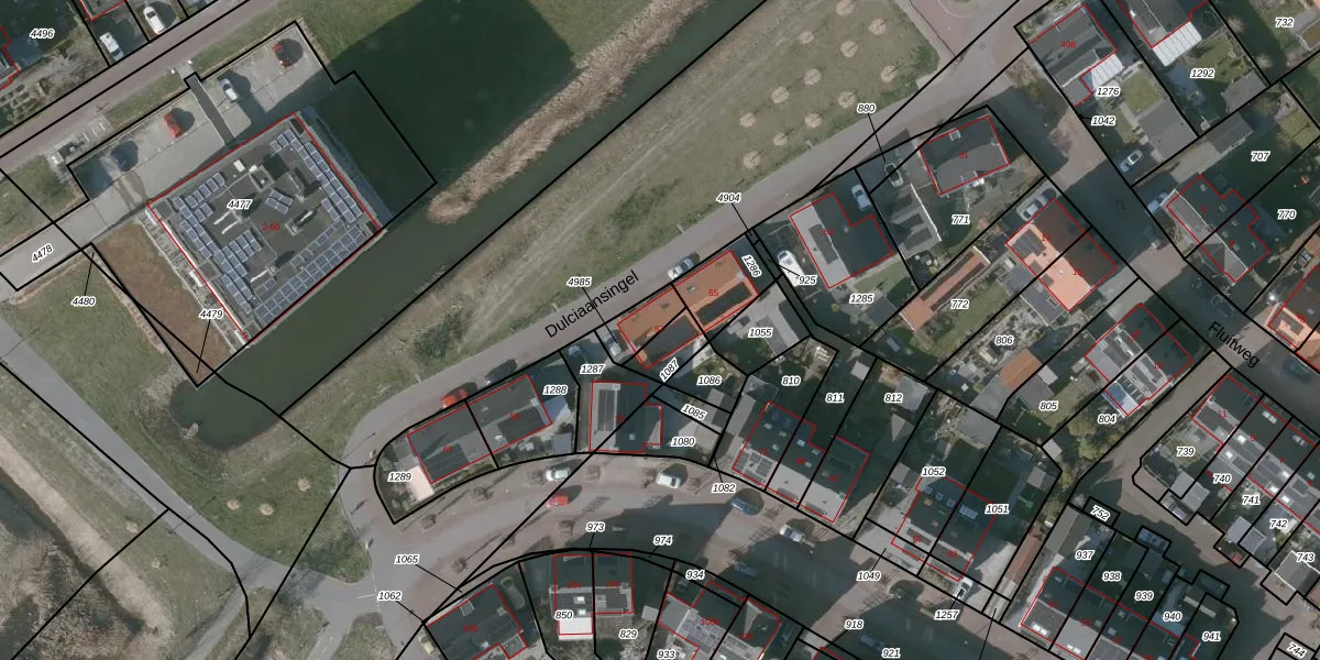 Dulciaansingel 57 is gelegen op kadastraal perceel GOE00E4985. Deze kadastrale aanduiding is uniek en wordt gebruikt door het Kadaster om eigendomsrechten en andere zakelijke rechten vast te leggen. Het perceel maakt onderdeel uit van de kadastrale gemeente Goes.