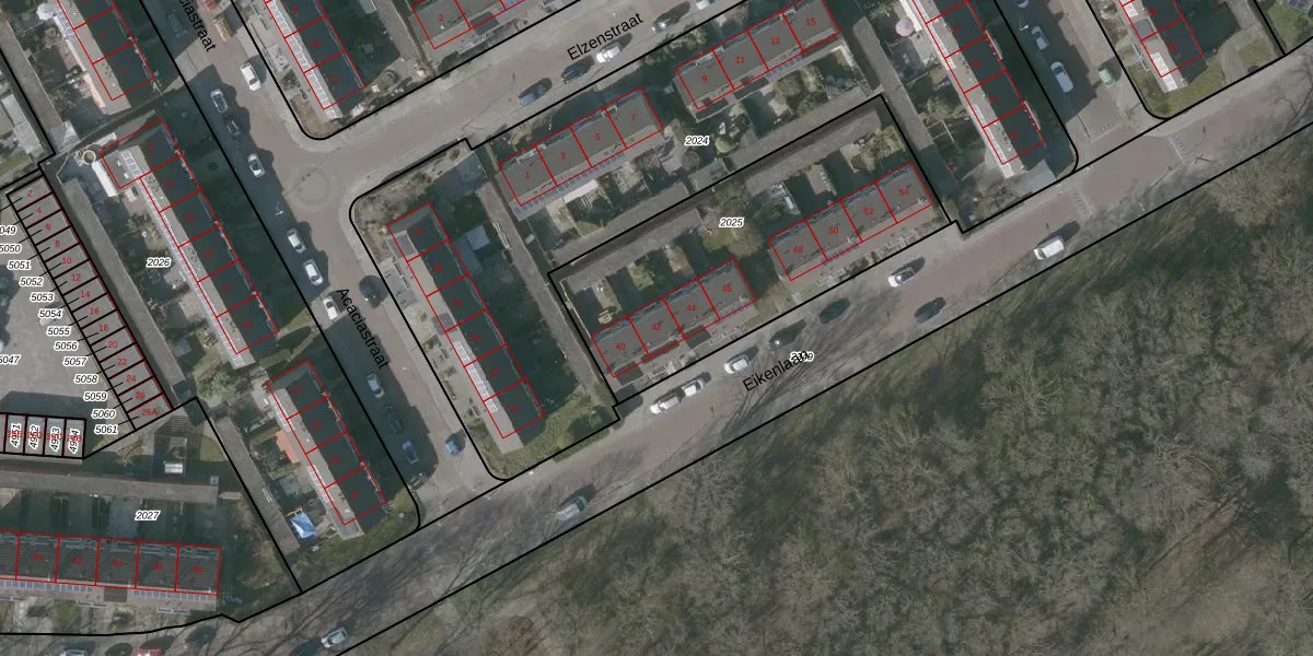 Eikenlaan 42 is gelegen op kadastraal perceel GOE00E2025. Deze kadastrale aanduiding is uniek en wordt gebruikt door het Kadaster om eigendomsrechten en andere zakelijke rechten vast te leggen. Het perceel maakt onderdeel uit van de kadastrale gemeente Goes.