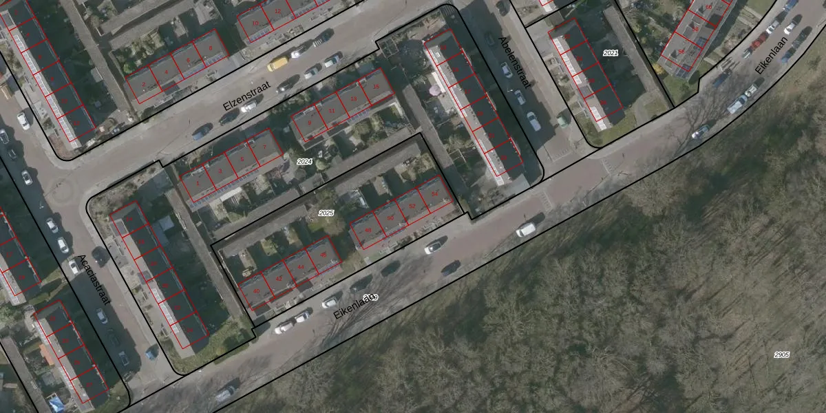 Eikenlaan 52 is gelegen op kadastraal perceel GOE00E2025. Deze kadastrale aanduiding is uniek en wordt gebruikt door het Kadaster om eigendomsrechten en andere zakelijke rechten vast te leggen. Het perceel maakt onderdeel uit van de kadastrale gemeente Goes.
