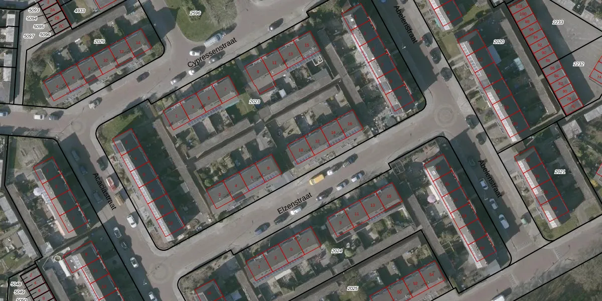 Elzenstraat 10 is gelegen op kadastraal perceel GOE00E2023. Deze kadastrale aanduiding is uniek en wordt gebruikt door het Kadaster om eigendomsrechten en andere zakelijke rechten vast te leggen. Het perceel maakt onderdeel uit van de kadastrale gemeente Goes.