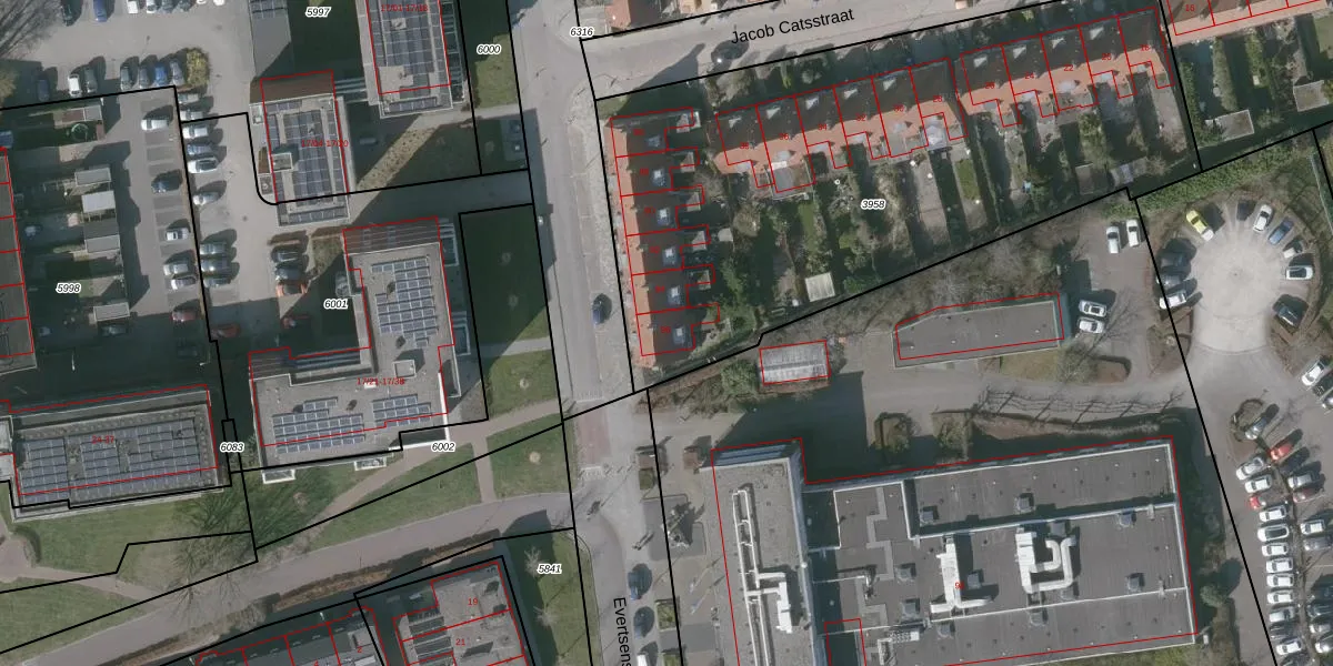 Het perceel waarop Evertsenstraat 96 staat heeft een oppervlakte van 3140 m². Dit is een zeer groot perceel. De perceeloppervlakte wordt geregistreerd door het Kadaster. Gedetailleerde informatie over de maten van dit perceel kunt u vinden in het rapport Kadastrale kaart met maatvoering van Evertsenstraat 96.