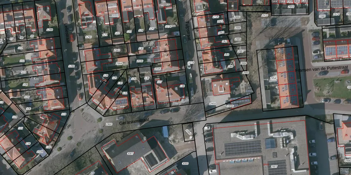Het perceel waarop Geraniumstraat 12 staat heeft een oppervlakte van 213 m². Dit is een middelgroot perceel. De perceeloppervlakte wordt geregistreerd door het Kadaster. Gedetailleerde informatie over de maten van dit perceel kunt u vinden in het rapport Kadastrale kaart met maatvoering van Geraniumstraat 12.