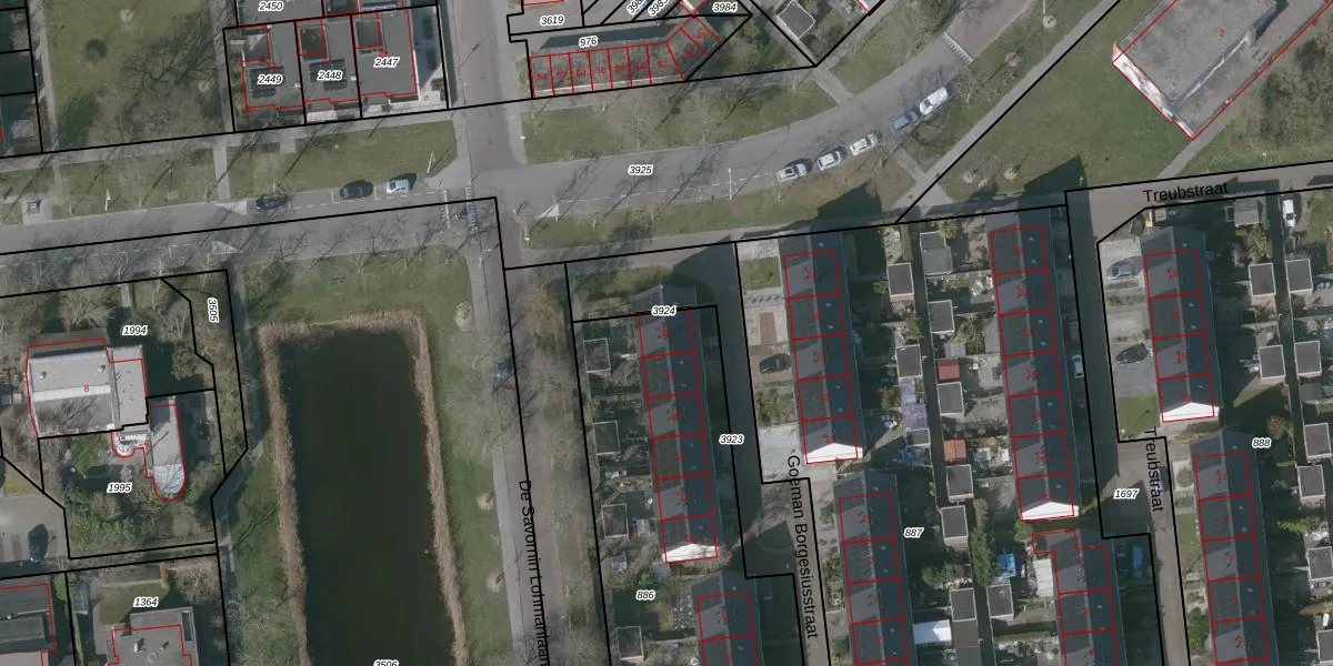 Het perceel waarop Goeman Borgesiusstraat 20 staat heeft een oppervlakte van 1775 m². Dit is een zeer groot perceel. De perceeloppervlakte wordt geregistreerd door het Kadaster. Gedetailleerde informatie over de maten van dit perceel kunt u vinden in het rapport Kadastrale kaart met maatvoering van Goeman Borgesiusstraat 20.
