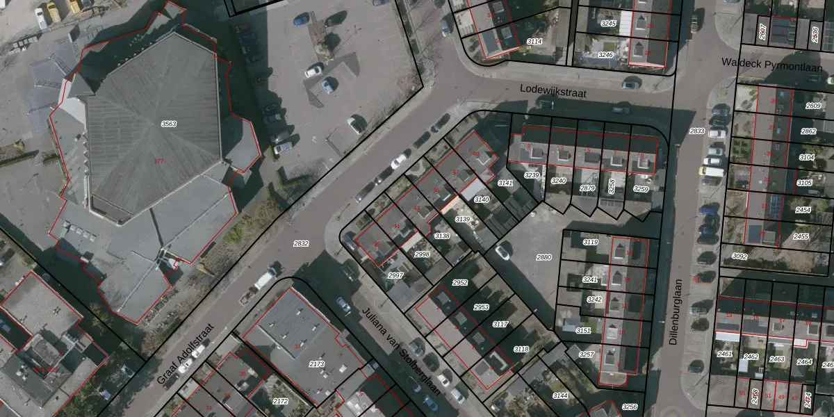 Gebruik de zoekbalk of klik op een perceel voor informatie over de adressen binnen dit perceel.