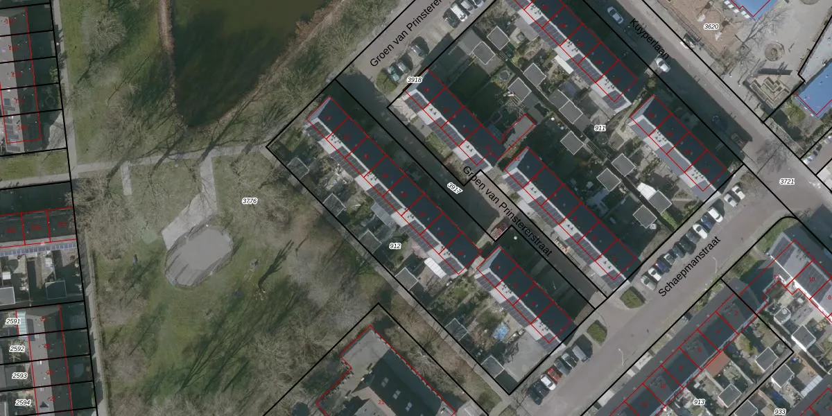 Groen van Prinstererstraat 14 is gelegen op kadastraal perceel GOE00A912. Deze kadastrale aanduiding is uniek en wordt gebruikt door het Kadaster om eigendomsrechten en andere zakelijke rechten vast te leggen. Het perceel maakt onderdeel uit van de kadastrale gemeente Goes.