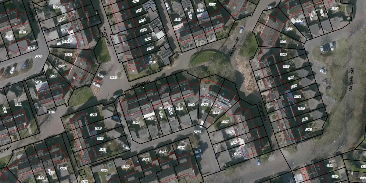 Het perceel waarop Hoogewei 49 staat heeft een oppervlakte van 230 m². Dit is een middelgroot perceel. De perceeloppervlakte wordt geregistreerd door het Kadaster. Gedetailleerde informatie over de maten van dit perceel kunt u vinden in het rapport Kadastrale kaart met maatvoering van Hoogewei 49.