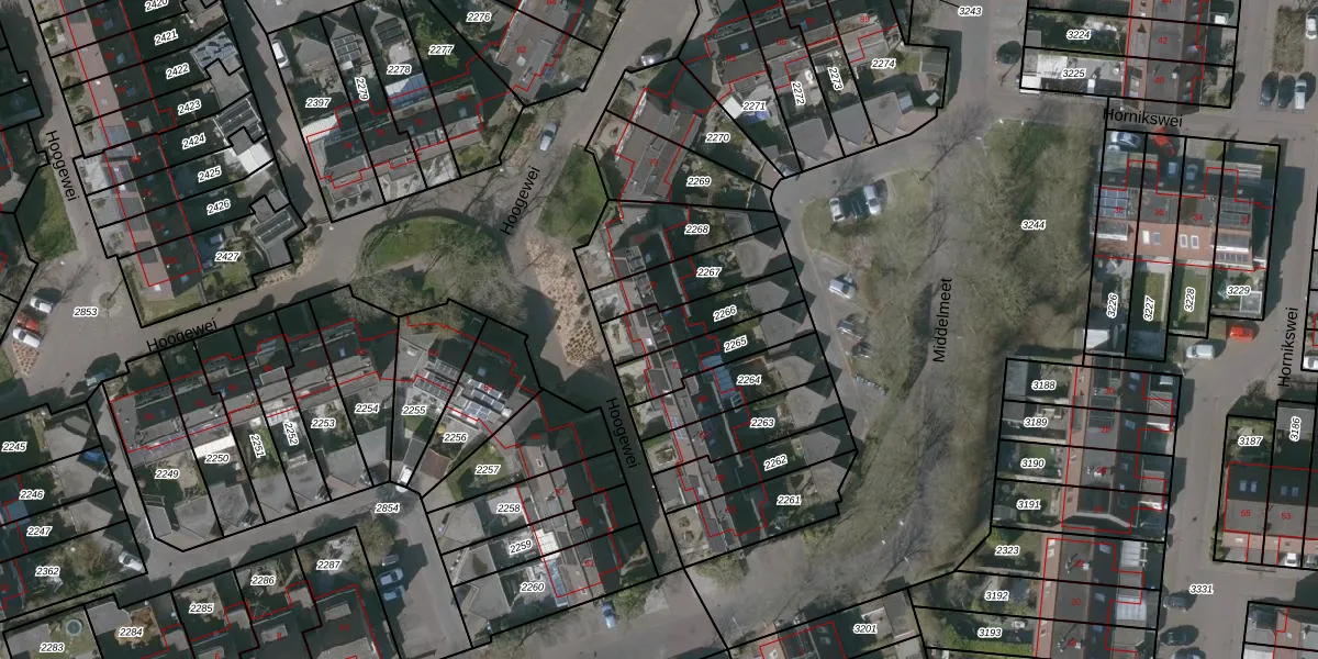 Het perceel waarop Hoogewei 73 staat heeft een oppervlakte van 174 m². Dit is een middelgroot perceel. De perceeloppervlakte wordt geregistreerd door het Kadaster. Gedetailleerde informatie over de maten van dit perceel kunt u vinden in het rapport Kadastrale kaart met maatvoering van Hoogewei 73.