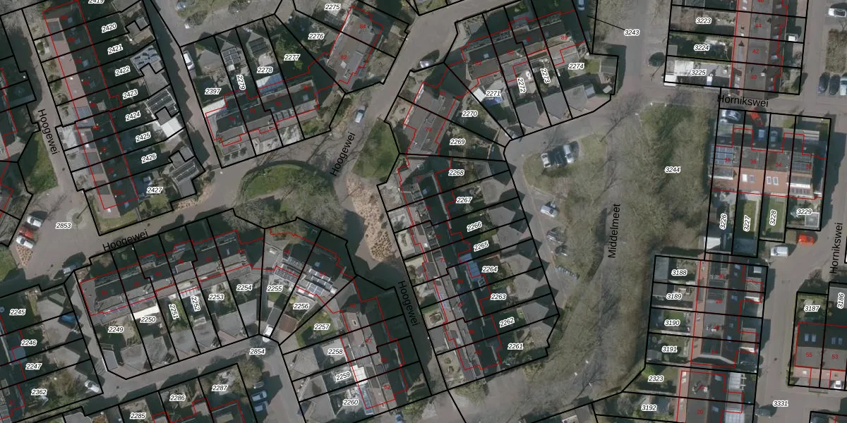 Gebruik de zoekbalk of klik op een perceel voor informatie over de adressen binnen dit perceel.
