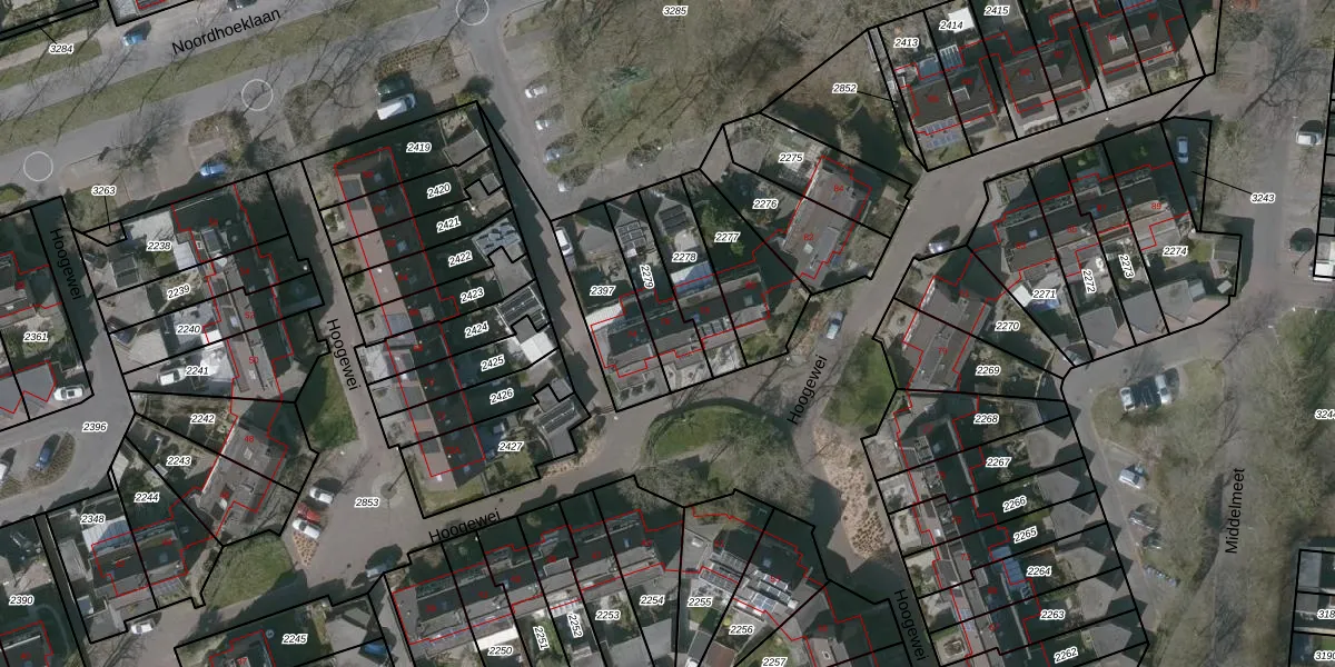 Gebruik de zoekbalk of klik op een perceel voor informatie over de adressen binnen dit perceel.