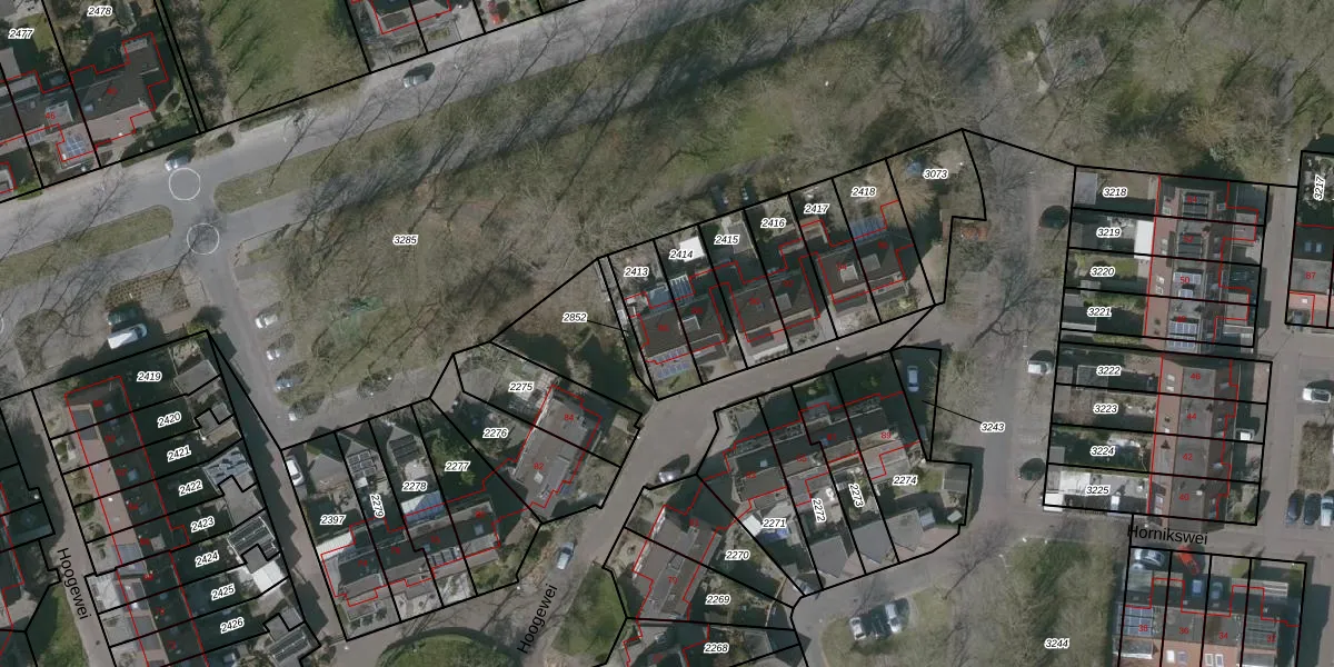 Het perceel waarop Hoogewei 86 staat heeft een oppervlakte van 166 m². Dit is een middelgroot perceel. De perceeloppervlakte wordt geregistreerd door het Kadaster. Gedetailleerde informatie over de maten van dit perceel kunt u vinden in het rapport Kadastrale kaart met maatvoering van Hoogewei 86.
