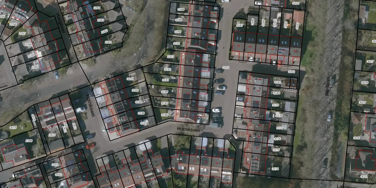 Hornikswei 16 is gelegen op kadastraal perceel GOE00B3194. Deze kadastrale aanduiding is uniek en wordt gebruikt door het Kadaster om eigendomsrechten en andere zakelijke rechten vast te leggen. Het perceel maakt onderdeel uit van de kadastrale gemeente Goes.