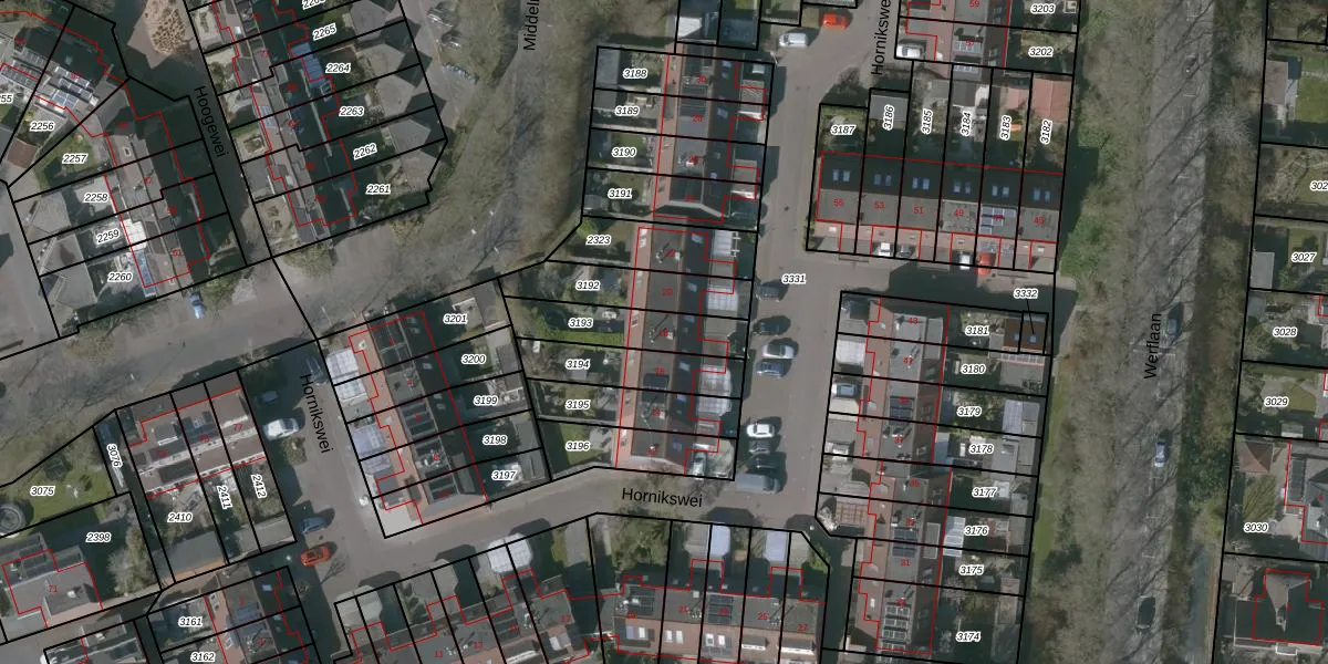 Hornikswei 18 is gelegen op kadastraal perceel GOE00B3193. Deze kadastrale aanduiding is uniek en wordt gebruikt door het Kadaster om eigendomsrechten en andere zakelijke rechten vast te leggen. Het perceel maakt onderdeel uit van de kadastrale gemeente Goes.