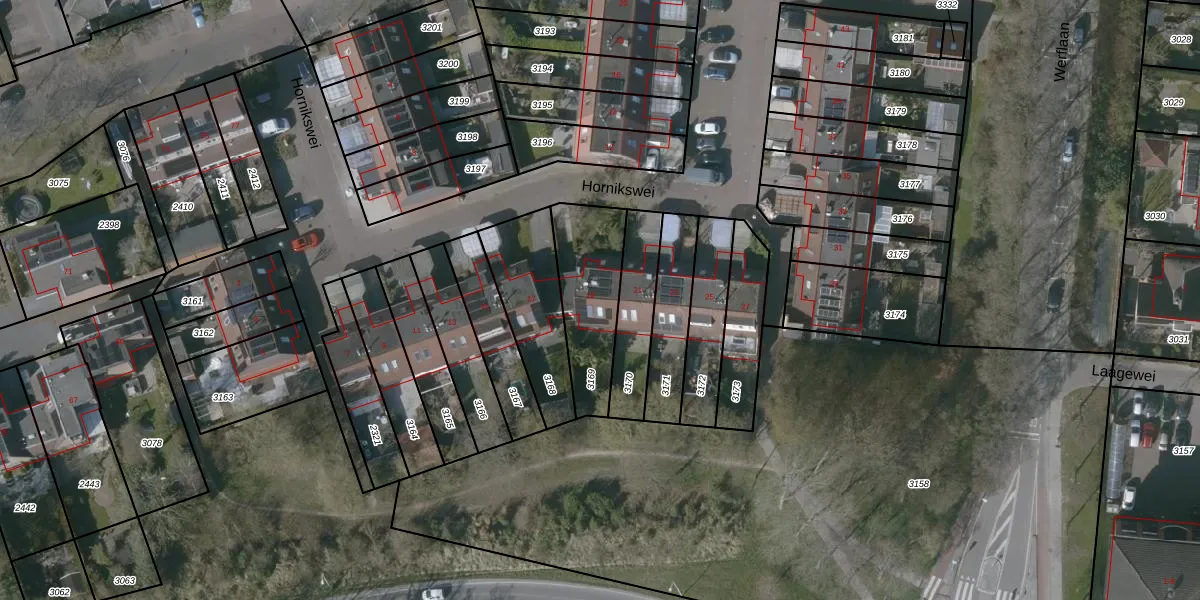 Hornikswei 19 is gelegen op kadastraal perceel GOE00B3169. Deze kadastrale aanduiding is uniek en wordt gebruikt door het Kadaster om eigendomsrechten en andere zakelijke rechten vast te leggen. Het perceel maakt onderdeel uit van de kadastrale gemeente Goes.