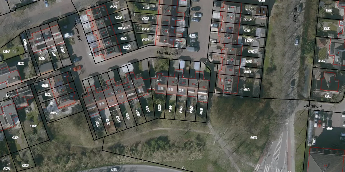 Hornikswei 21 is gelegen op kadastraal perceel GOE00B3170. Deze kadastrale aanduiding is uniek en wordt gebruikt door het Kadaster om eigendomsrechten en andere zakelijke rechten vast te leggen. Het perceel maakt onderdeel uit van de kadastrale gemeente Goes.