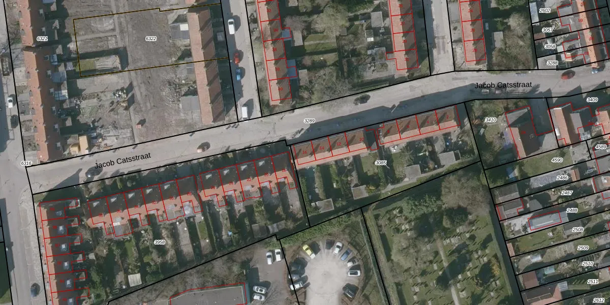 Jacob Catsstraat 16 is gelegen op kadastraal perceel GOE00C3085. Deze kadastrale aanduiding is uniek en wordt gebruikt door het Kadaster om eigendomsrechten en andere zakelijke rechten vast te leggen. Het perceel maakt onderdeel uit van de kadastrale gemeente Goes.