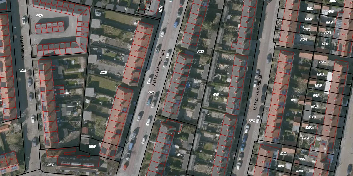 J.D.van Mellestraat 52 is gelegen op kadastraal perceel GOE00F1935. Deze kadastrale aanduiding is uniek en wordt gebruikt door het Kadaster om eigendomsrechten en andere zakelijke rechten vast te leggen. Het perceel maakt onderdeel uit van de kadastrale gemeente Goes.
