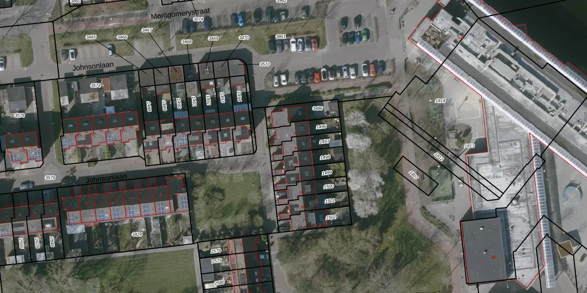 Gebruik de zoekbalk of klik op een perceel voor informatie over de adressen binnen dit perceel.