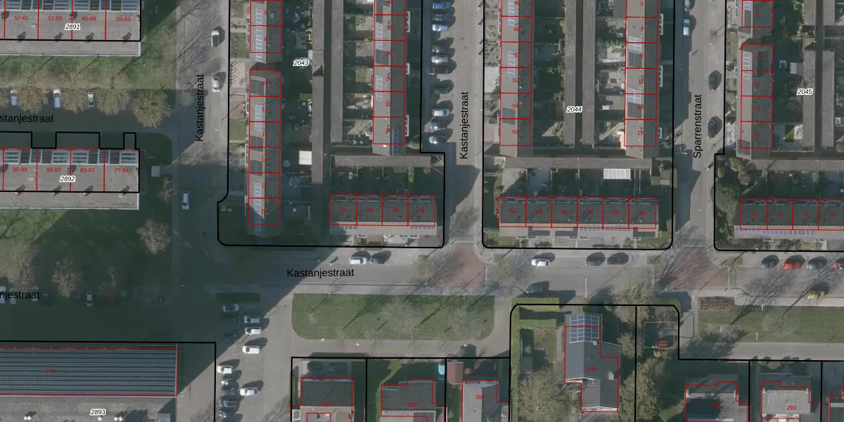 Kastanjestraat 28 is gelegen op kadastraal perceel GOE00E2043. Deze kadastrale aanduiding is uniek en wordt gebruikt door het Kadaster om eigendomsrechten en andere zakelijke rechten vast te leggen. Het perceel maakt onderdeel uit van de kadastrale gemeente Goes.