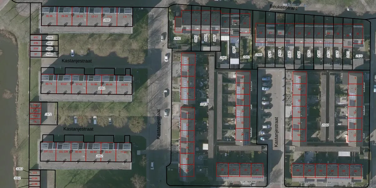 Kastanjestraat 8 is gelegen op kadastraal perceel GOE00E2043. Deze kadastrale aanduiding is uniek en wordt gebruikt door het Kadaster om eigendomsrechten en andere zakelijke rechten vast te leggen. Het perceel maakt onderdeel uit van de kadastrale gemeente Goes.