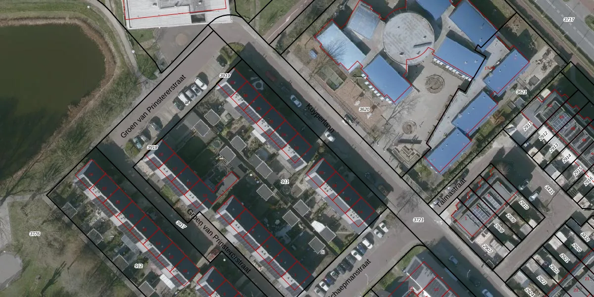 Het perceel waarop Kuyperlaan 22 staat heeft een oppervlakte van 3365 m². Dit is een zeer groot perceel. De perceeloppervlakte wordt geregistreerd door het Kadaster. Gedetailleerde informatie over de maten van dit perceel kunt u vinden in het rapport Kadastrale kaart met maatvoering van Kuyperlaan 22.