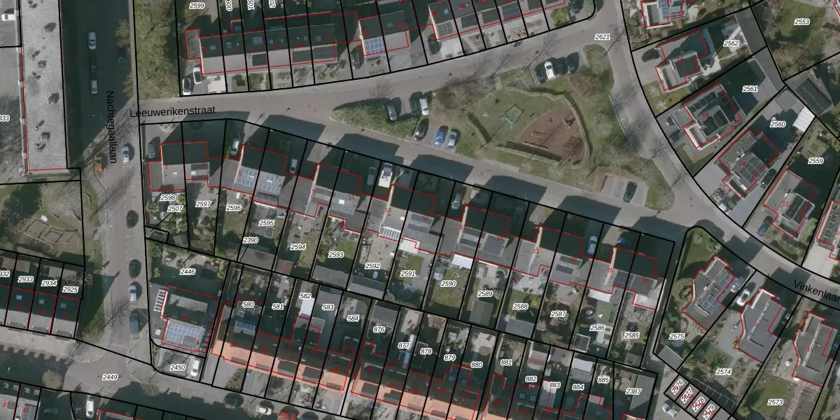 Het perceel waarop Leeuwerikenstraat 15 staat heeft een oppervlakte van 293 m². Dit is een middelgroot perceel. De perceeloppervlakte wordt geregistreerd door het Kadaster. Gedetailleerde informatie over de maten van dit perceel kunt u vinden in het rapport Kadastrale kaart met maatvoering van Leeuwerikenstraat 15.