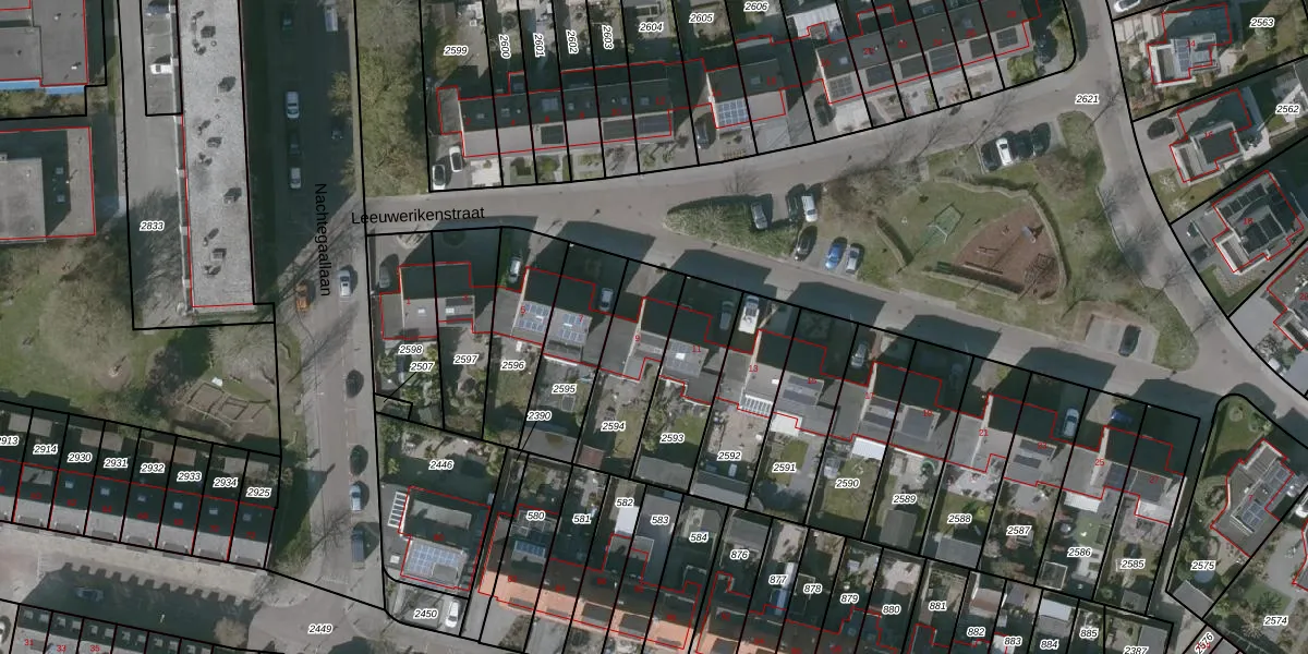 Leeuwerikenstraat 9 is gelegen op kadastraal perceel GOE00F2594. Deze kadastrale aanduiding is uniek en wordt gebruikt door het Kadaster om eigendomsrechten en andere zakelijke rechten vast te leggen. Het perceel maakt onderdeel uit van de kadastrale gemeente Goes.