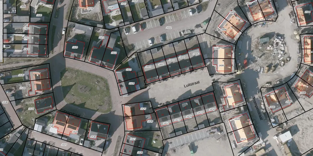 Luitstraat 9 is gelegen op kadastraal perceel GOE00V1601. Deze kadastrale aanduiding is uniek en wordt gebruikt door het Kadaster om eigendomsrechten en andere zakelijke rechten vast te leggen. Het perceel maakt onderdeel uit van de kadastrale gemeente Goes.