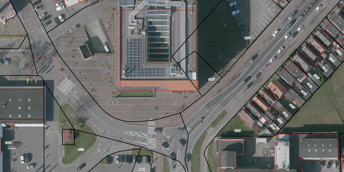 Het perceel waarop M.A.de Ruijterlaan 2 staat heeft een oppervlakte van 1,3 ha. Dit is een zeer groot perceel. De perceeloppervlakte wordt geregistreerd door het Kadaster. Gedetailleerde informatie over de maten van dit perceel kunt u vinden in het rapport Kadastrale kaart met maatvoering van M.A.de Ruijterlaan 2.