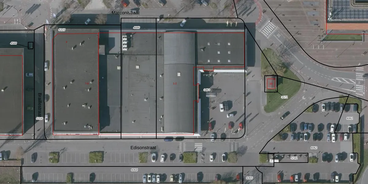 Het perceel waarop Marconistraat 2 staat heeft een oppervlakte van 3127 m². Dit is een zeer groot perceel. De perceeloppervlakte wordt geregistreerd door het Kadaster. Gedetailleerde informatie over de maten van dit perceel kunt u vinden in het rapport Kadastrale kaart met maatvoering van Marconistraat 2.