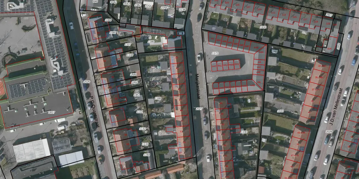 Marijkestraat 45 is gelegen op kadastraal perceel GOE00F1188. Deze kadastrale aanduiding is uniek en wordt gebruikt door het Kadaster om eigendomsrechten en andere zakelijke rechten vast te leggen. Het perceel maakt onderdeel uit van de kadastrale gemeente Goes.