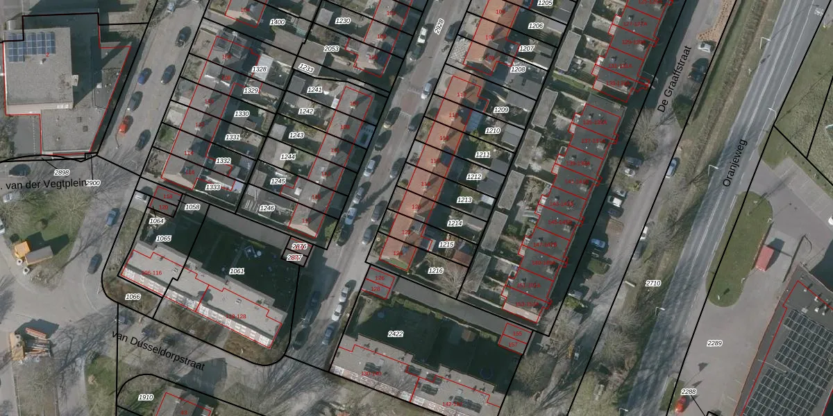 Gebruik de zoekbalk of klik op een perceel voor informatie over de adressen binnen dit perceel.