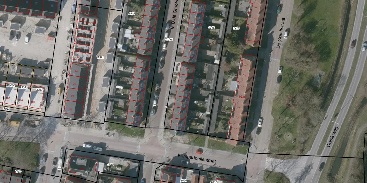 Het perceel waarop M.D.de Grootstraat 26 staat heeft een oppervlakte van 2584 m². Dit is een zeer groot perceel. De perceeloppervlakte wordt geregistreerd door het Kadaster. Gedetailleerde informatie over de maten van dit perceel kunt u vinden in het rapport Kadastrale kaart met maatvoering van M.D.de Grootstraat 26.