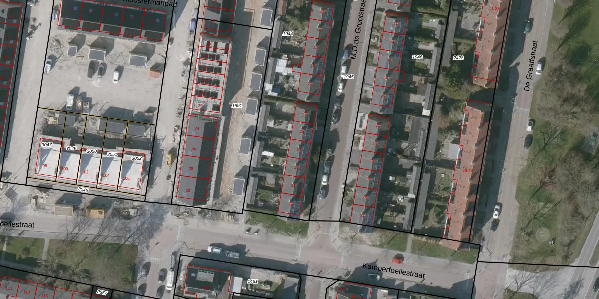 Het perceel waarop M.D.de Grootstraat 27 staat heeft een oppervlakte van 2636 m². Dit is een zeer groot perceel. De perceeloppervlakte wordt geregistreerd door het Kadaster. Gedetailleerde informatie over de maten van dit perceel kunt u vinden in het rapport Kadastrale kaart met maatvoering van M.D.de Grootstraat 27.